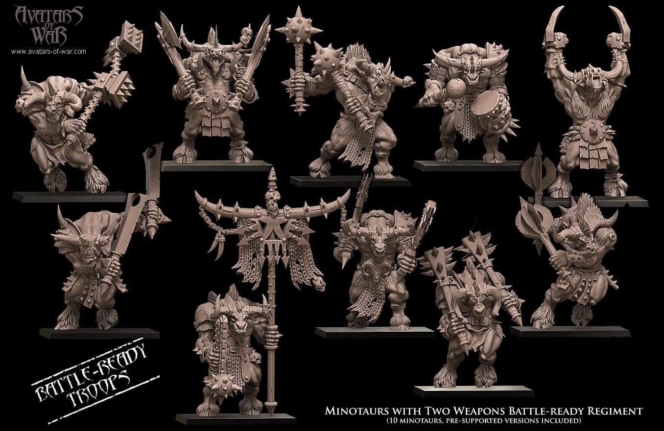 3D printed Minotaurs with Two Weapons by Avatars of War